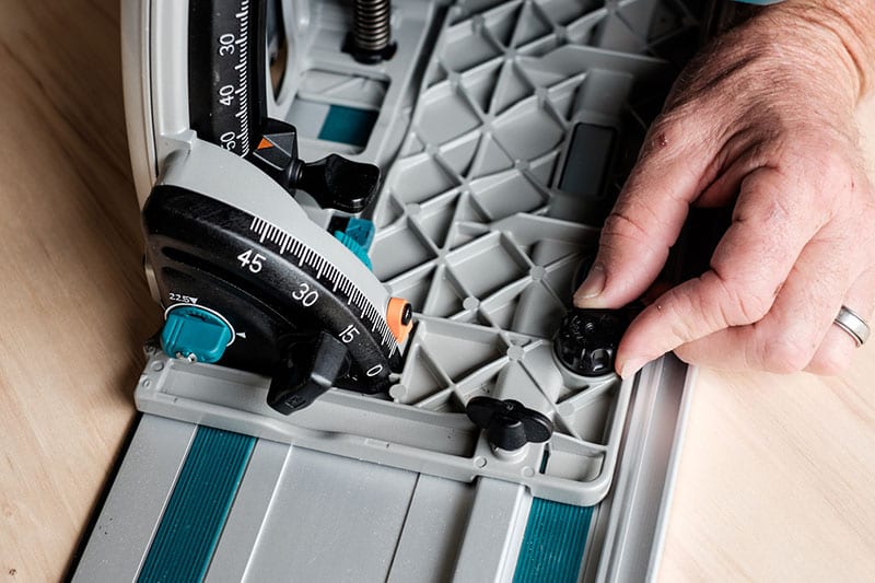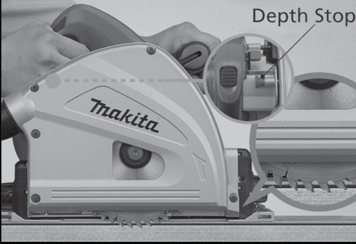 The reverse plunge action of the Makita Track Saw takes a little getting used to for those of us familiar with plunge cutting using a standard circular saw. Once you acclimate, the action is smooth and effortless. Depressing the plunge release button on the handle opposite the trigger is natural and Makita did a great job with ergonomics.