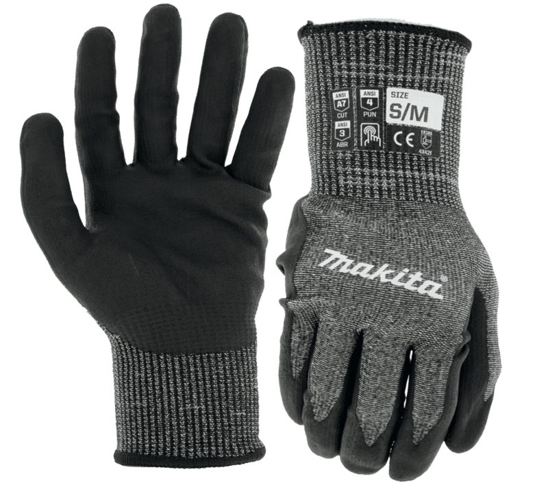 These Makita level 1 Nitrile coated dipped gloves are available in sizes S/M or L/XL. They are available at several online retailers for a price of $7.99.