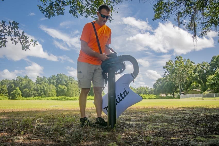 When in vacuum/mulching mode, the Makita XBU04 is designed to pull up leaves without disturbing stone and rock in your plant beds, putting a higher priority on CFM than airspeed. Additionally, the mulching impeller reduces leaves down to a 10:1 ratio, depositing the bits into the 1.4-bushel bag.