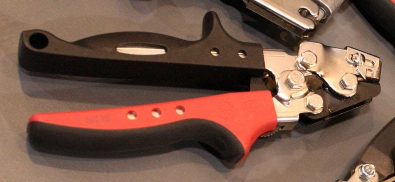 The new grips on the Malco Redline tools really improve over the previous dipped rubber/plastic style. Malco made the new grips from sturdy red plastic with black over-molded rubber inserts. They deliver more leverage without as much pressure against your palm or fingers. With over 20 different tools currently in this series, they should be able to fit almost any metal and vinyl requirements. Malco has them available from over a dozen online retailers.