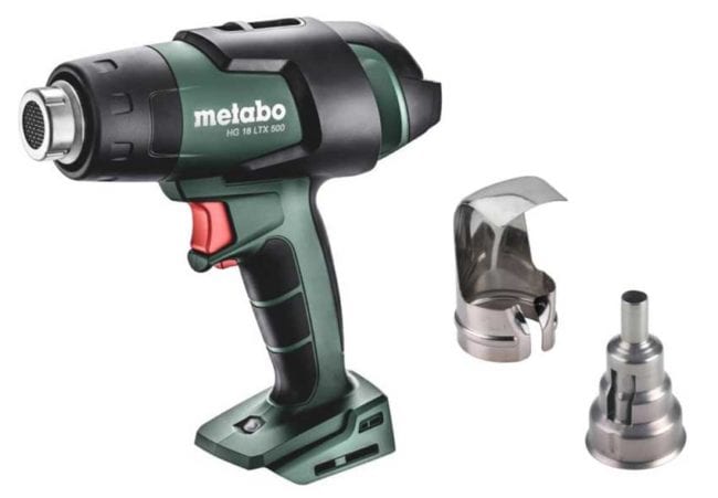 You can pick up the Metabo HG 18 LTX 500 Cordless Heat Gun from various online retailers. Sold as a bare tool, it retails for around $132. It comes with a wraparound nozzle and a reducing nozzle for spot heating. Metabo also warranties the heat gun for 3 years.
