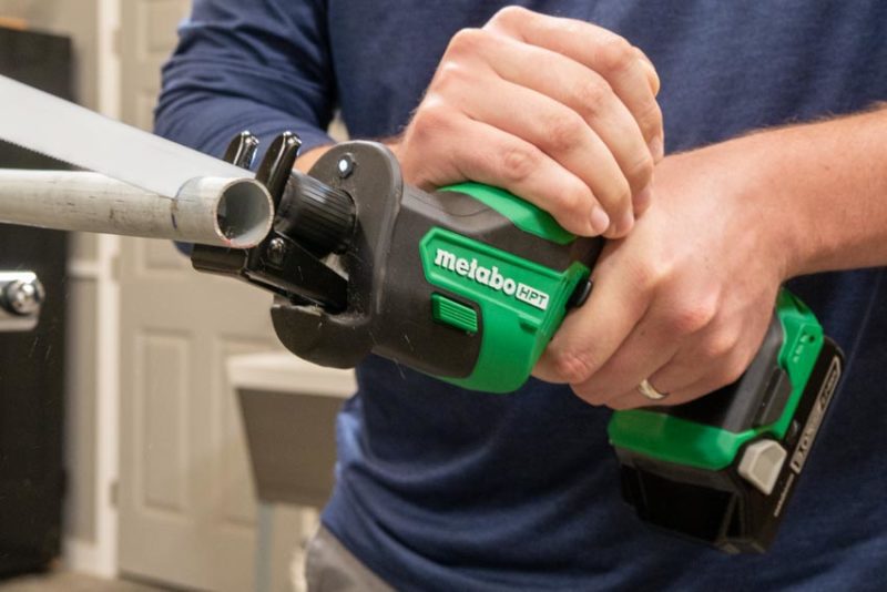 On paper, we expect it to cut well in thin-walled metal and PVC and fairly slow in wood, but thereโ€™s a reason you still play the game. We made cuts in 2x4s, PVC, and EMTโ€”materials that youโ€™re likely to encounter in the worlds of plumbing and electrical. The Metabo HPT one-handed reciprocating saw handles these materials easily with faster speeds than a hand saw and better access than a full-size reciprocating saw.