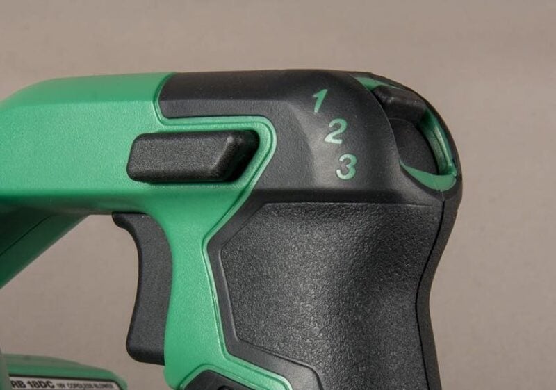 This blower has three speed settings, with maximum no-load speeds of 20,000 RPM and maximum air velocity of 213 MPH. The speed level controls are located on the back of the tool so you can easily manage the airflow.
