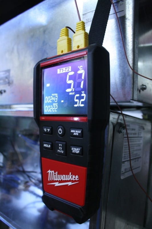 The Milwaukee 2270-20 Contact Temperature Meter is Accurate from 2500ยฐF to -325ยฐF and runs on AA batteries. While an M12 version of this tool is certainly something that would fit well with the line, the low current requirements, coupled with the convenience of a less bulky case, mean that the Milwaukee 2270-20 Contact Temperature Meter.