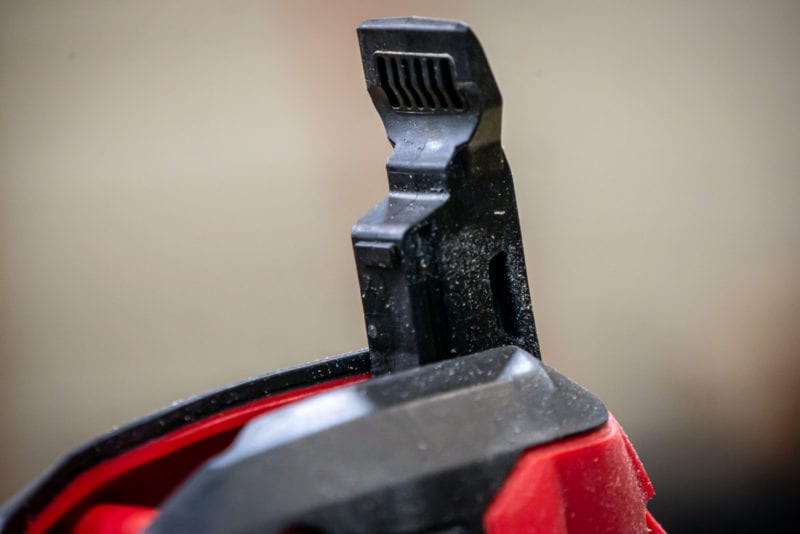 Looking over Milwaukeeโs design, the foundation is a barrel grip housing thatโs a bit slimmer than similar designs. While models such as Ridgid and DeWalt have a more ergonomic shape, the rounded handle lends itself to a more natural grip when you need to cut at odd angles. The top, bottom, and side grips are all comfortable, even if you donโt have large hands.