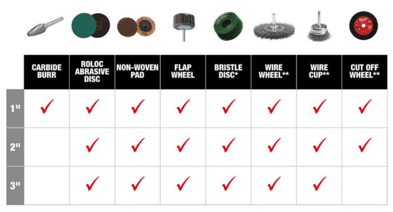 Fortunately, Milwaukee provided a quick sizing guide to help you select recommended accessories.