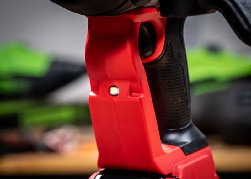 There are a couple of new features that come on the D-handle models. The first is a shift to Tri-LED light around the drive. Like we saw on the compact and mid-torque M18 Fuel impact wrenches, these do a much better job of eliminating when you need the light.