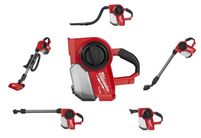 For small areas and spot cleaning, Milwaukee has introduced the M18 Fuel Compact Vacuum (model 0940-20). Milwaukee tells us that this vacuum delivers up to 50% more sustained suction than other cordless compact vacuums currently on the market. With a unique two-stage debris separation and including five dedicated attachments, this vacuum tackles just about any vacuuming application on the jobsite. It seems like a marked, and more capable improvement over the former Milwaukee 0882-20 M18 compact vacuum.