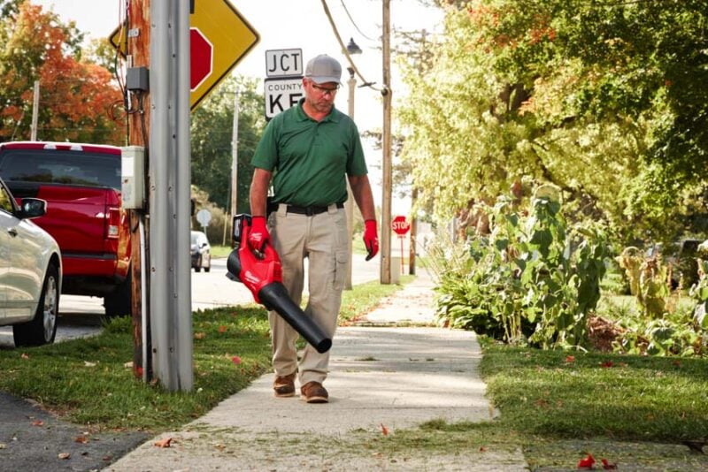 Compared to the performance offered by the Milwaukee dual-battery and Milwaukee backpack blowers, the performance is lower. Keep that in perspective, however. Handheld gas blowers max out around 13 Newtons for residential models and 15 Newtons for professional-grade blowers. Thereโs plenty of blowing force available to clear off hard surfaces after mowing and to manage your Fall leaves.