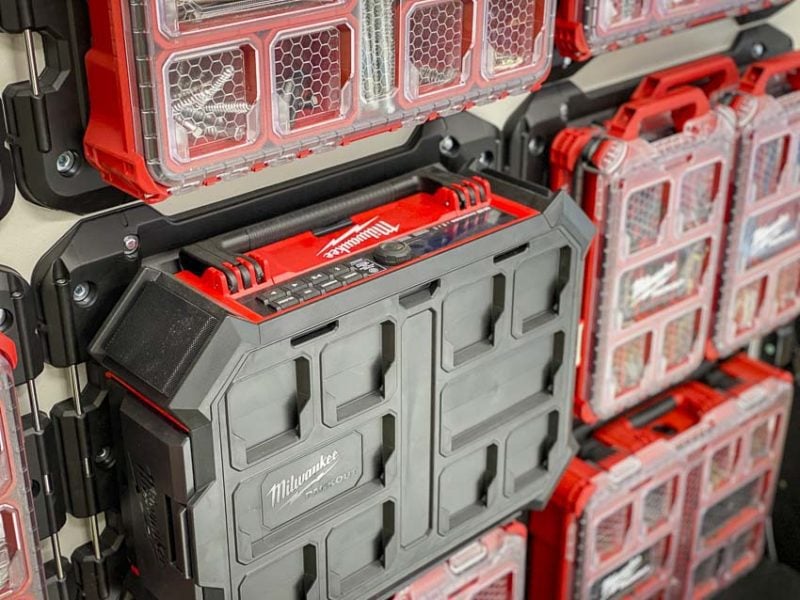 The Milwaukee Packout Charging Radio exceeded expectations. For the money, you get a radio specifically designed for the jobsiteโand with the Packout system in mind. That makes it easily transportable for those already running with that rig. It has plenty of sound output, and we love how easily it connects to Bluetooth. This is our go-to radio in the shop these days, and it outperforms all of Milwaukee Toolโs prior models. Milwaukee has less expensive models if you want to skip the charging feature or Packout compatibility.
