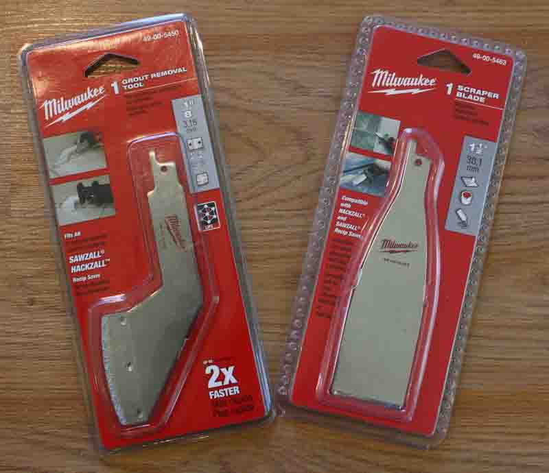 We like the way that Dan Wolfgram, Associate Product Manager for Milwaukee Electric Tool Corporation, sums it up: โ€œThe development of these new accessories really transforms the Sawzall or Hackzall recip saw from primarily a cutting tool into one that can tackle many common material removal applications. Available in both 1-1/2โ€ณ and 3โ€ณ sizes, these new scraper blades offer an excellent solution for removing materials such as linoleum flooring, strong adhesives, paint, glue, thin-set, drywall mud, rust, etc. Likewise, the carbide grit grout removal tool does an excellent job removing grout from 1/8โ€ณ up to 3/4โ€ณ in width.โ€