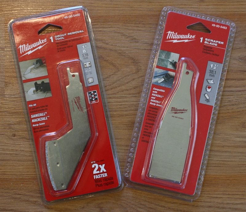 At first, we thought a scraper or grout removal blade in a Sawzall or Hackzall would be unwieldy, but we actually found them to be relatively easy to control. The thing to remember with both blades is that a slow to medium motor speed is preferred (and suggested on the packaging too). We found it easy to find the sweet spot once we got used to how the tools handled. On the scraper blade, we do advise using a shorter stroke versus a long stroke reciprocating saw, since the slighter movement offers more control and less chance for the blade to jump or gouge the surface you are working on.