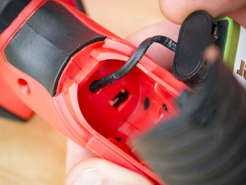 Unlike the M12โ€™s rechargeable lithium-ion battery, this model uses a 9V battery. To access it, youโ€™ll need a screwdriver to unlock the compartment. While itโ€™s not always convenient, I like the fact that it locks instead of just sliding off. I have enough things running around with electrical tape holding the battery door in place already.