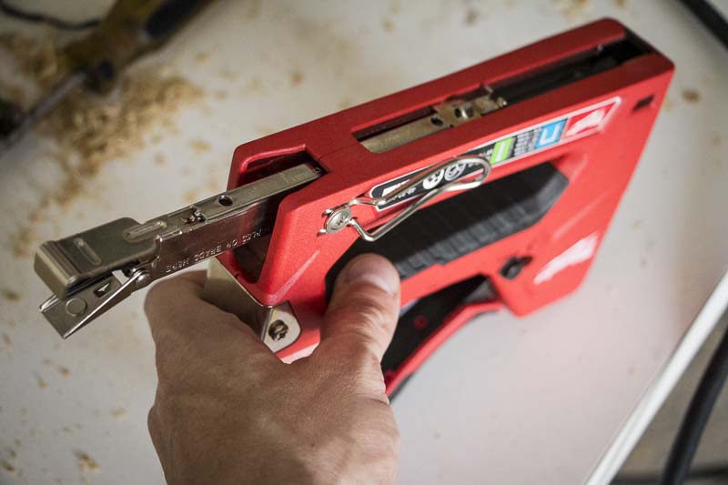 For those nails that didnโ€™t quite get all the way in (mostly because I was switching modes on the tool to test them out), Milwaukee gives you a handy strike plate on the rear end of the staple gun. Simply tilt the tool backwards, tap the staple, and continue with your workโ€”thereโ€™s no need to grab a hammer. Itโ€™s a huge time-saverโ€ฆbecause, letโ€™s face it, youโ€™re going to have to poundย some staples at some point.
