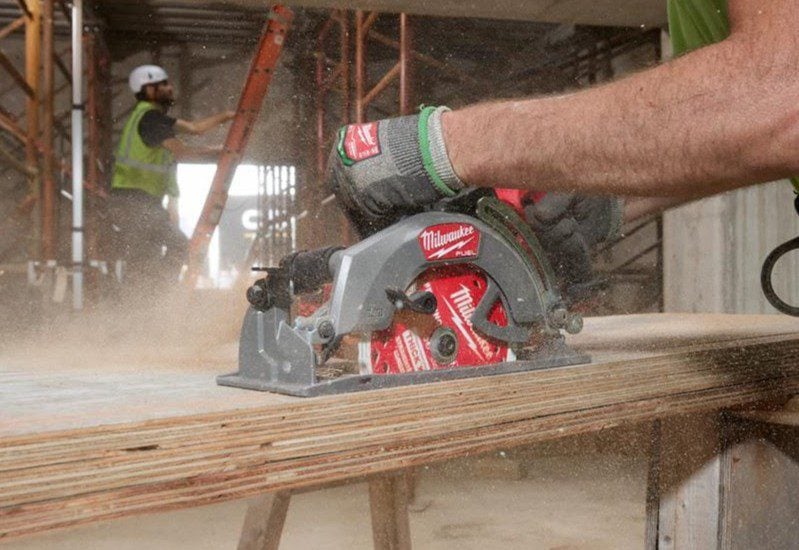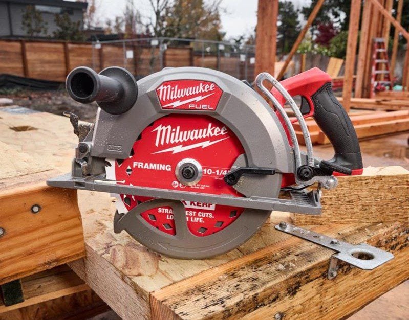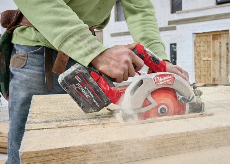 Milwaukeeโ€™s cordless 10 1/4-inch circular is the brandโ€™s first battery-powered saw of this size. It features a 3 13/16-inch cut depth at 90 degrees, giving it the ability to cut up to 4x lumber in a single pass. Plus, it weighs just 10.3 pounds as a bare tool, which Milwaukee claims makes it the lightest-weight circular saw in its class. Using a 12.0Ah Forge battery, this saw can complete up to 250 cuts per charge in 4ร—4 material.