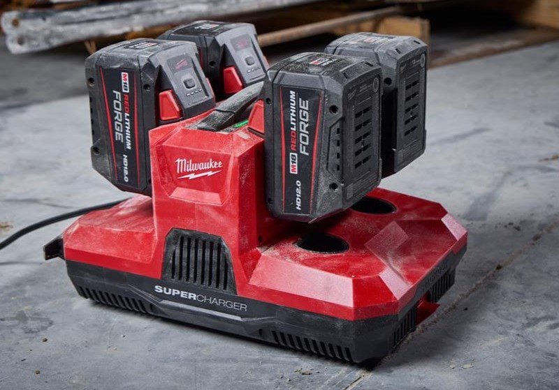 Super Chargers are Milwaukeeโ€™s fastest chargers, and this new model benefits both M18 and M12 users. It features two M18 standalone bays and two M18/M12 hybrid bays. This allows for simultaneous charging of up to four M18 batteries, or two M18 and two M12 batteries. Milwaukee claims it charges four M18 Forge 12.0Ah batteries to 100% in as little as 90 minutes for less downtime on the job. A carrying handle, as well as Packout compatibility, make it easy to transport throughout the jobsite.