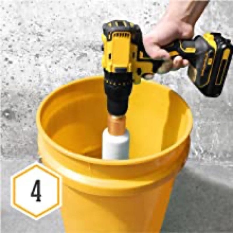 You’ll need a couple of buckets, and one of those filled with water. After chucking up the Roller Ready Cleaner and sliding on your dirty paint roller, you hold the Roller Ready inside the first bucket and fire up the drill. It only takes a few seconds to spin off all of the excess paint inside the bucket.