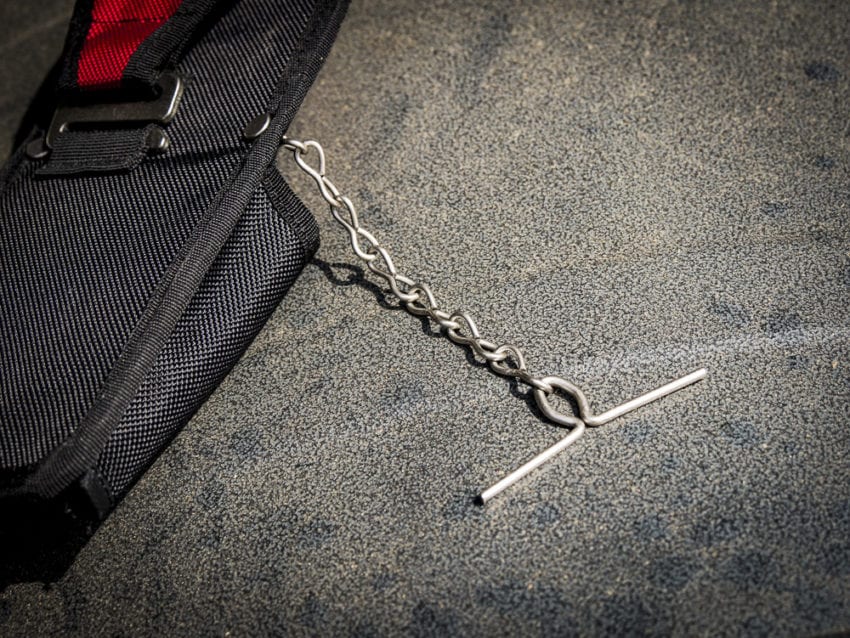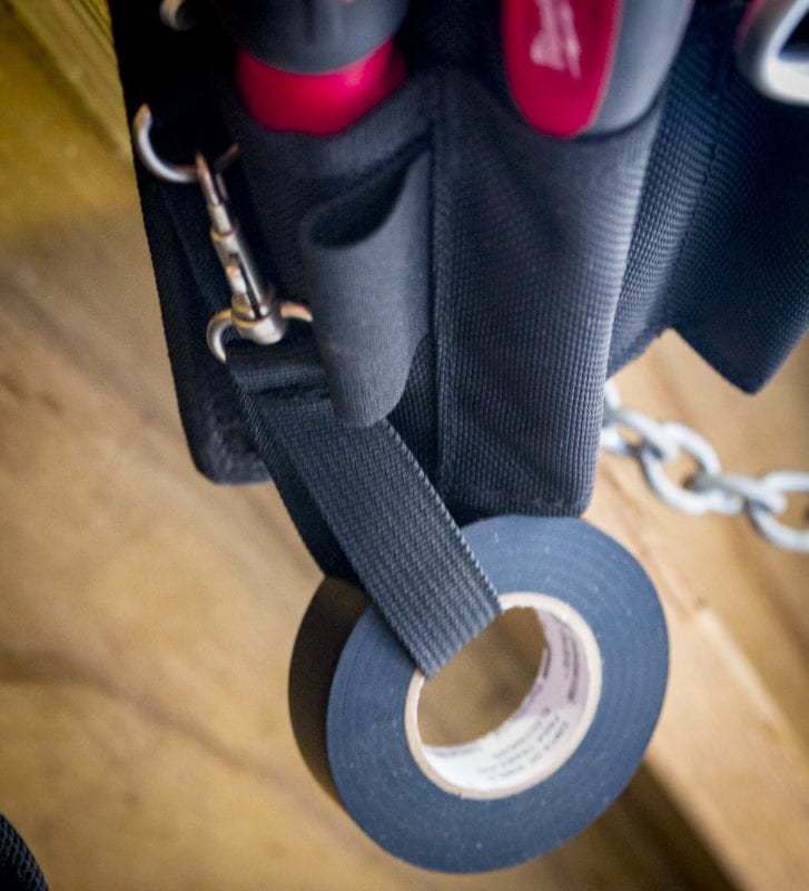 The compact utility pouch has a tape chain for holding a couple rolls of electrical or pipe thread tape. It wonโt hold as many rolls as the strap on the larger utility pouch will, but it will suffice for Pros that just keep a few rolls handy.