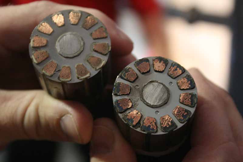 3982Andrew Plowman showed us some new angle grinders that have been under development for over 2-1/2 years. The #1 need was durability, followed by both power and ease of use. With the give and take involved, it took Milwaukee some time to nail all three. By making the bevel gears 24% larger in radius, they found it could handle more over time. The electronics found in larger grinders was brought down to the more compact models. Lastly, Milwaukee found a way to use smaller diameter copper wire and a slower winding process to increase the amount of copper into an armature thatโ€™s the same size. By doing this they achieved up to 50% more power.