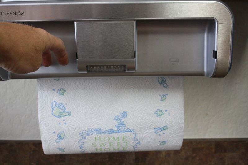 Installation was indeed easy, largely because all of the required hardware was included and there was a full template for the mounting holes we drill into the cabinet from above. The CLEANCut Paper Towel Dispenser is extremely safe and secure when properly installed and it wasnโt long before we just loaded up a roll of paper towels (not included, lol) and tested it out.