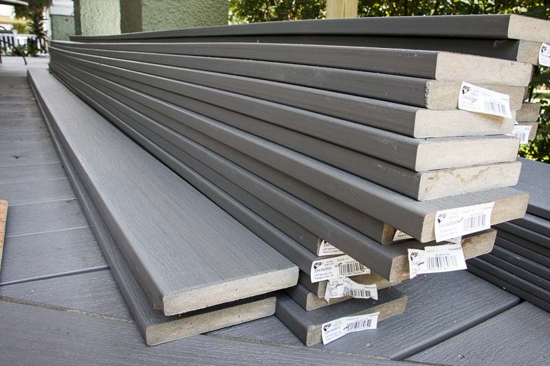 Deckorators included 1/2-inch thick 11-1/4โณ wide trim boards to dress out the exposed endsย of the boards, and we further designed it so that a ripped horizontal board would be laid across the entire front of the decking, ensuring that there was no exposed laminate edges to be caught or snagged by anyone happening to climb up onto the deck from the front or sides. It also had the added benefit of giving us a very nice finished look.