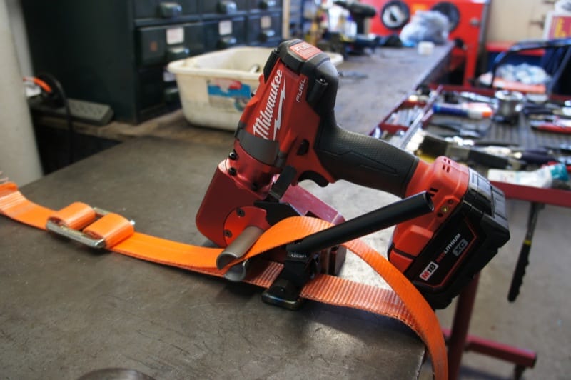 Where Josh found frustration (and later, opportunity) was with a similar woven poly strapping (almost like your car seat belts) that had an even better profile of strength, flex, weight and cost. The trouble was, no cordless tools were available to handle the really heavy applications. By his own admission, the market for the type of tool specific to this high load application is pretty small (in the hundreds). But for those users, a manual ratchet tool simply is not going to cut it. By fabricating a tool that can create 2700 lbs of tension, it really allows for this lashing and webbing product to be used more frequently and provides advantages for large shippers.