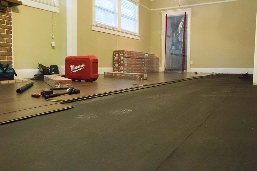Yes, that was a lot of prep, but once completed, the Pergo Outlast laminate flooring laid down easily. The steps to installing this flooring are simple:
