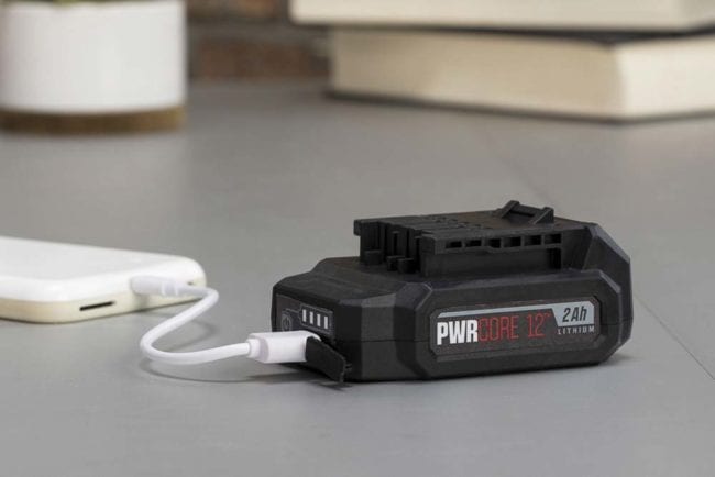 Thereโs also PWRAssist mobile charging. With Skil cordless tools, you wonโt need a USB adapter to slide on the pack. The port is already built into it. Youโll be able to give any of your USB rechargeableย devices a boost. Thereโs also a USB port on the charger.