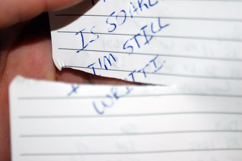 Okay, when I first picked up and even wrote on this, I had no idea it was stone paper. It was when I read the back of the cover sheet that I saw the words โwaterproof paperโ. Really? Yeah, right. So I immediately went over to the sink and let the faucet run over the paper for about 20 seconds. There was water on it, but it wiped right off. I could immediately write on it with no smearing or tearing. I ran it again over a page that I had already written on, yet the ink remained undamaged with no smearing.