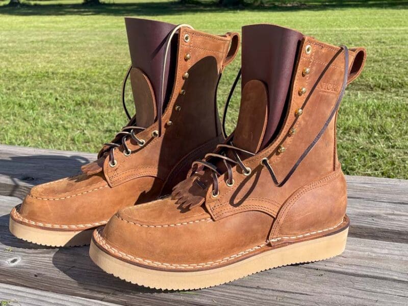 The style of the boot varies with your choices, but in general, the standard configuration has the look of a classic logger without as pronounced of a heel. By shifting it to a wedge sole and moc toe, Issacโs version takes on a more stylish look that works with his personal tastes on and off the job.