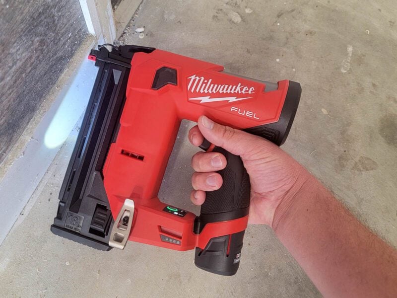 Again, Milwaukee is leading the charge, and their M12 Fuel 18-gauge Brad Nailer is an excellent option. It doesnโ€™t quite have the full nail length range as 18V and air models, though, so itโ€™s not going to be the best solution for everyone.