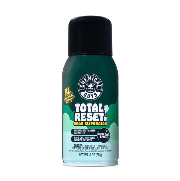 While the Chemical Guys Total Reset Car Odor Eliminators arenโt specifically targeting pet owners, they can certainly come in handy! Sometimes, our cars just need a full scent refresh. There are two scents: New Car Smell and Black Frost, which CG describes as a cologne-inspired scent.