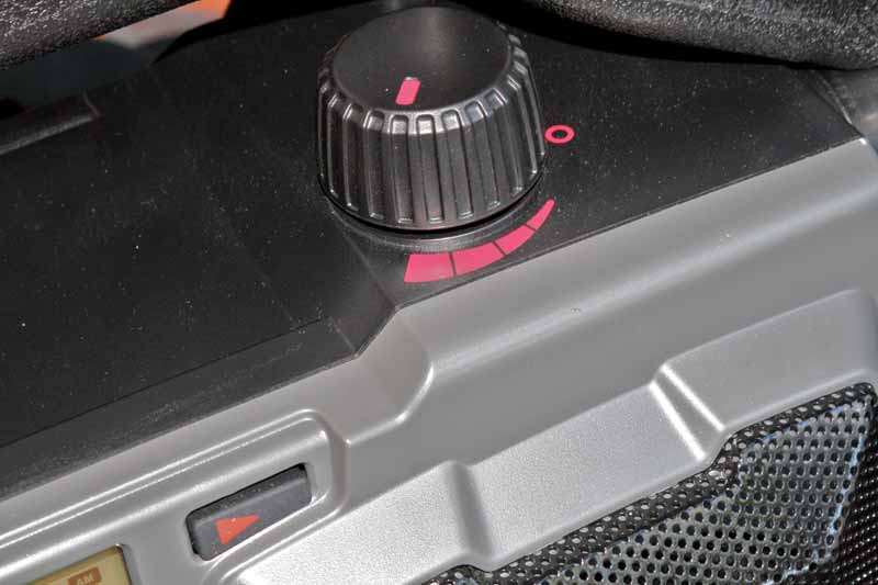 The volume knob is obscenely large, but that also means that you will be able to use it easily with or without gloves. The plastic โroll cageโ is made of plastic and is secured to the main body of the radio by exactly six screws. Upon examination, the radio doesnโt feel like it could take a huge hit or fall without cracking the plastic โ probably along one of the seam points or where the plastic is secured against the frame. It does, however, seem like the cage would break prior to the actual radio โ and that might just be good enough for most people and the intent of the design.