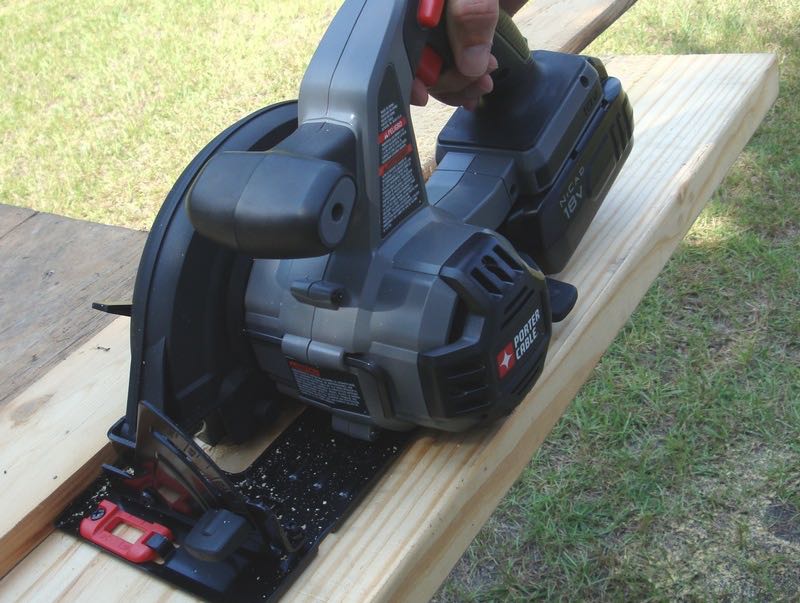 The PC186CS cordless circular saw is equipped with a 6-1/2โณ carbide-tipped blade, which makes it possible to cut through thicker materials. As we continued our projects, however, we did begin to experience the limits of the batteries. Having the second battery close by and with Porter Cableโs rapid charger handy, it never really seemed to slow us down. The sight lines are also pretty good on the saw, with good visibility of the blade and the cutting guide.