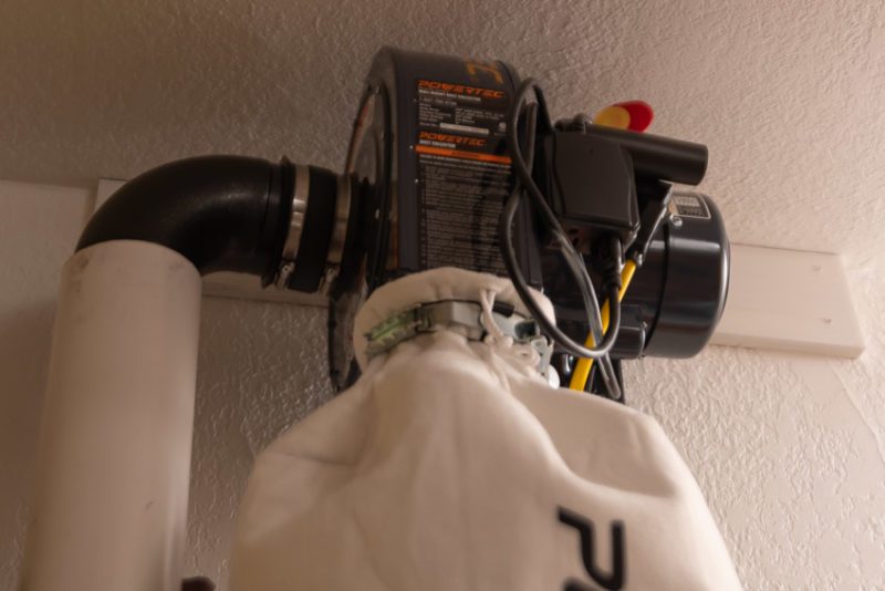 Knowing what mistakes not to make, I used PVC to hard pipe the duct all the way to the floor so I could keep my flexible hose as short as possible. Then I was ready to use the Powertec Dust Collector.