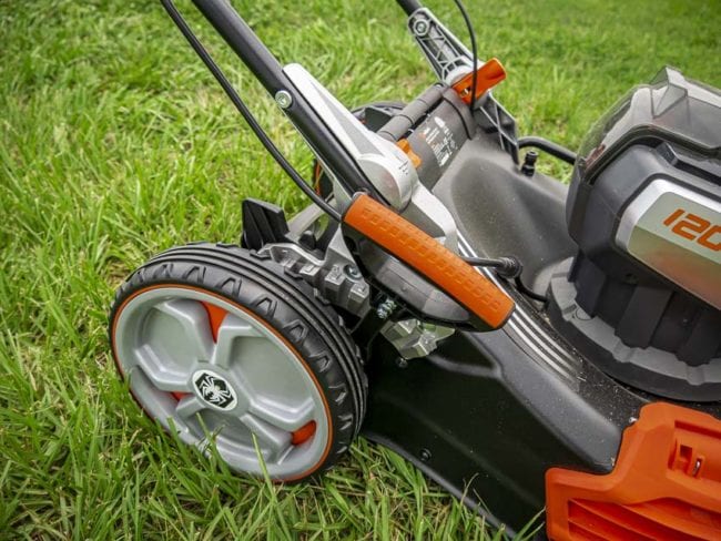 The Redback 120V Self-Propelled Lawn Mower dominates in the power category. Thereโs a trade-off for that, and weโll talk about it shortly. For the time being, know that the Redback 120V doesnโt mind being thrown into the taller grass.