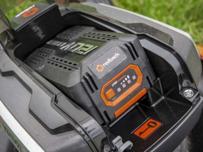 The Redback 120V Self-Propelled Lawn Mower presented a solid value when we first got a hold of it at $462 for the kit (regular price is $599.99). It includes the 120V, 3.0Ah battery and charger. It also comes with a 5-year warranty on the tool and a 1-year warranty on the battery.