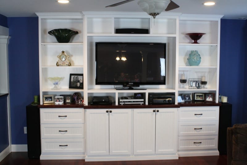 I fabricated a large 10 foot wide by 8 foot tall built-in entertainment cabinet. The project included building cabinet boxes, drawers, doors, shelving and a wood countertop. Obviously, the Unisaw was a major player in the project from ripping materials down to cutting tenons and dados.