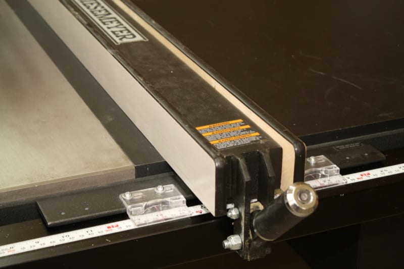 The 52โ Biesemeyer Fence System is also built at the same location in Anderson, SC. This simple yet effective fence system slides across the table smoothly, locks into place with little effort, and allows the user to set the saw to precise measurements through the use of its hairline pointer.
