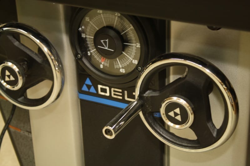 And when I say โeasyโโthe cranks both turn so smoothlyโyouโd think you were working with a very expensive milling machine. Mounted between the two cranks is a very easy to read dial-type gauge for the blade bevel angle. The gauge reads to an accuracy of ยผ degree.