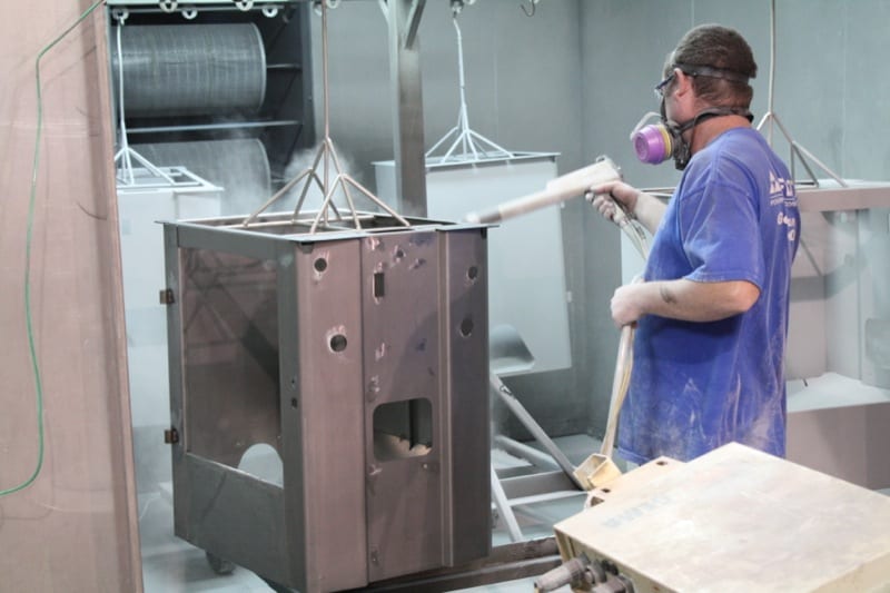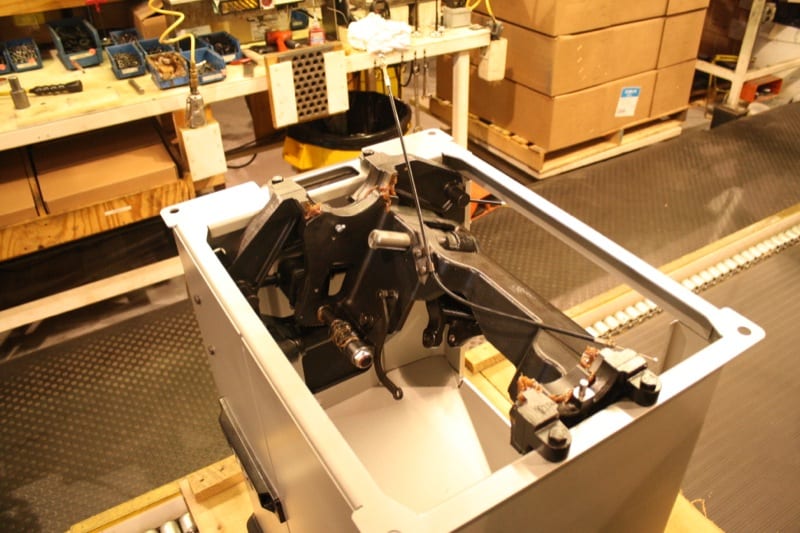 While I was visiting the plant in South Carolina, I got to follow my actual saw as it was built from scratch. Early in the morning the metal used to build the supporting cabinet was bent and cut from massive sheets of steel. As the pieces moved around the building they were fabricated and finally powder coated before hitting the assembly line.