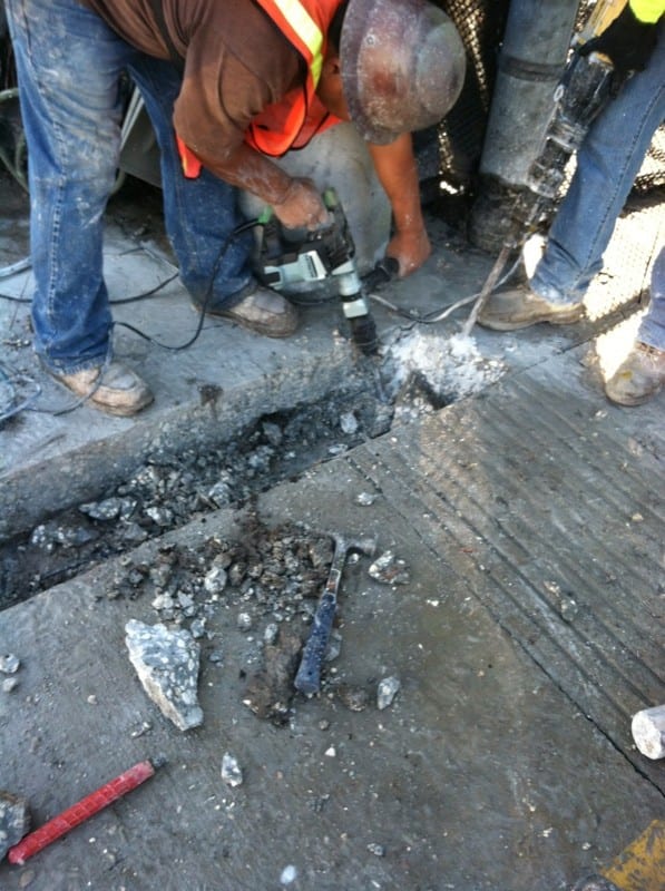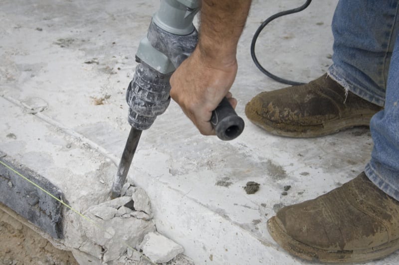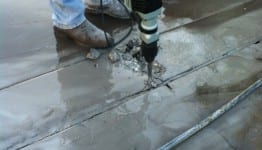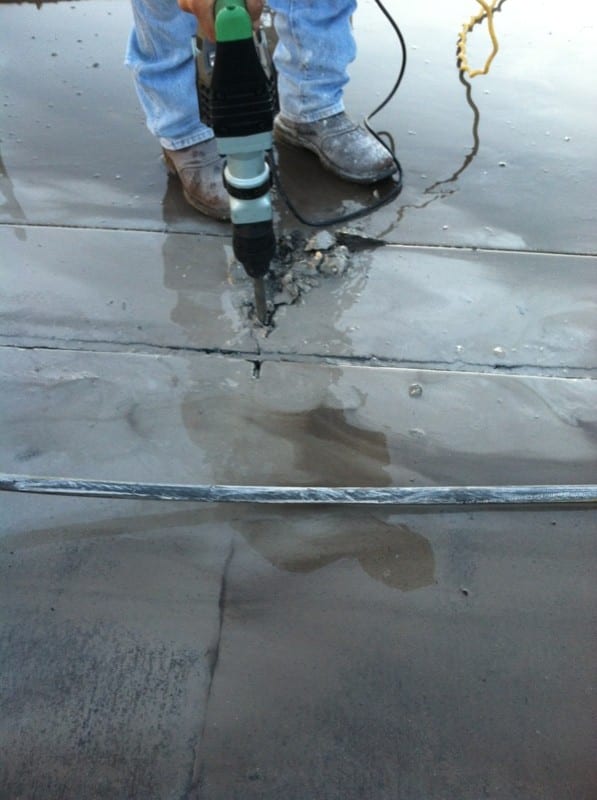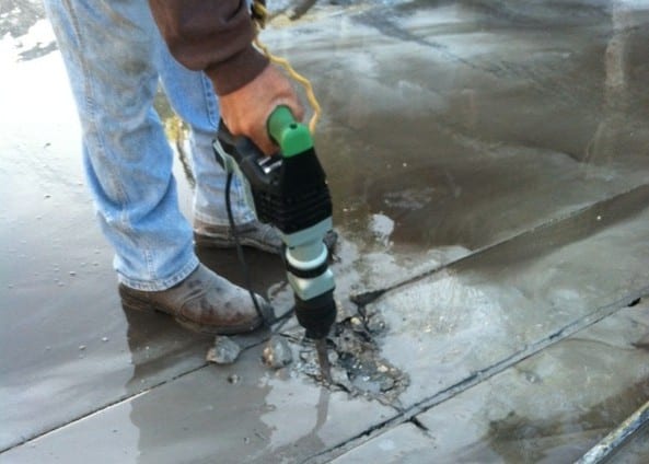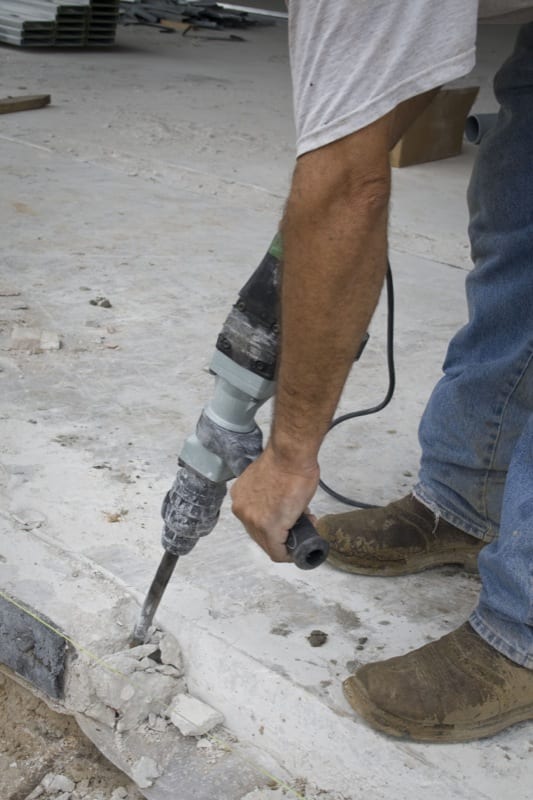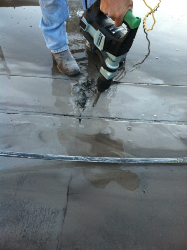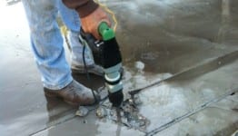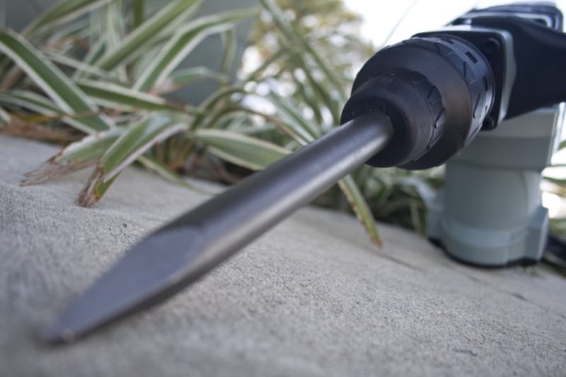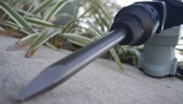 Sergio: (laughing) Oh man, drainage on concrete is a huge issue. [At Loweโs] we saw cut two lines about 20 feet long and then used a larger demo hammer plus the Hitachi to chip out the concrete in between. It was around 6โณ thick in that area. If it were over 6โ8โณ deep we probably would have gone with just the larger hammer, but the Hitachi helped us clean up the edges while the big hammer kept going. It really sped up the job.