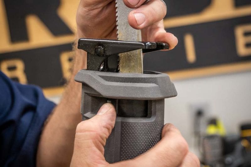 - Blade release lever on the side of the tool