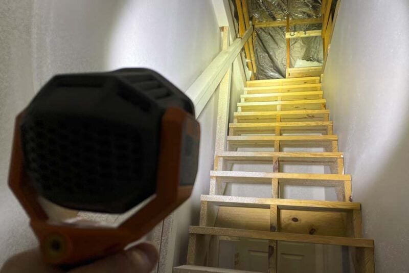 For control, there are three brightness settings— high (3200 lumens), medium (2000 lumens), and low (1000 lumens). When you turn the spotlight on, it starts on the high setting. From there, you can cycle to medium or low by pressing the power button until you reach the setting you’re aiming for.