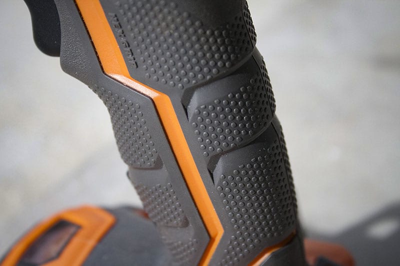 Ridgid’s Hex Grip on the handle makes the drill comfortable and secure in the hand. The drill is light and compact thanks in part to the brushless motor.