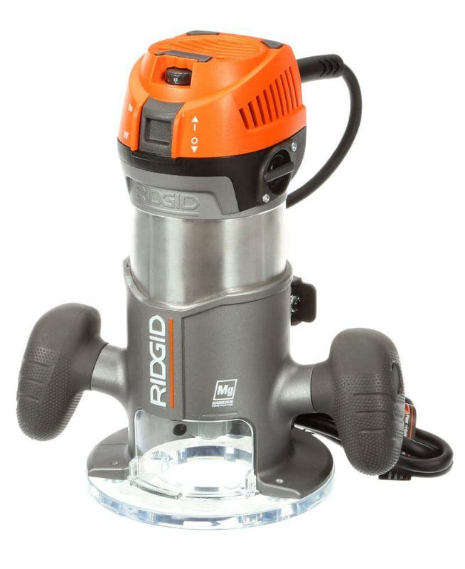 You will quickly find Ridgidโ€™s quality standard is high. Their heavy duty router modelย is very solid. ย Adjustments are precise and components are tight with little play. ย As with all Ridgid tools the standard durable plastic orange casing is complimented with a rubberized over-molded grip material. ย The motor is well balanced providing comfortable operation. ย The included fixed base is solid with angled ergonomic handles. Ridgid has constructed the base from magnesium which is lightweight and very stiff.