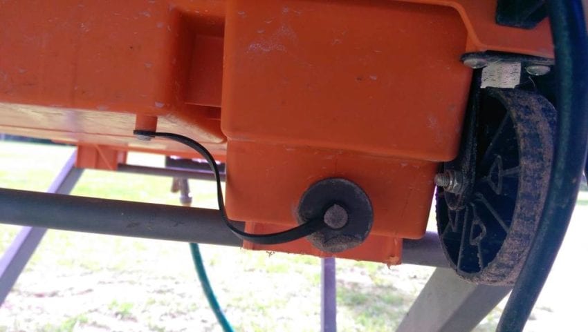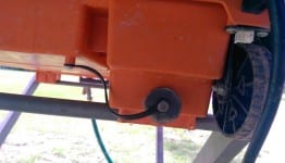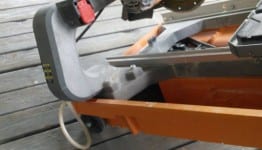Remove the threaded cap on the rear of the water pan, and drain the water into a 5-gallon bucket or onto the lawn.  While the water is draining, release the two large clips on the front where the pan and frame meet, then lift the frame and saw from the pan and set aside.  Spray out the pan, spray off the mesh filter, then replace the frame and saw and fasten the clips.  Now wheel your saw to your truck, load it up and you’re ready for another day of work.