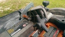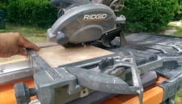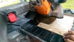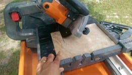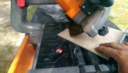 Next, I test our tool with some 18 x 18 ceramic floor tile.  Again, the cutting of the tile was not a problem, and the cut was still very true…no bog or run-out of the blade.  Using the included aluminum miter guide, I quickly set to 45, so I could cut diagonal on the 18” tile.  No matter what type of cut I was making on the tile, it was no problem for the saw.