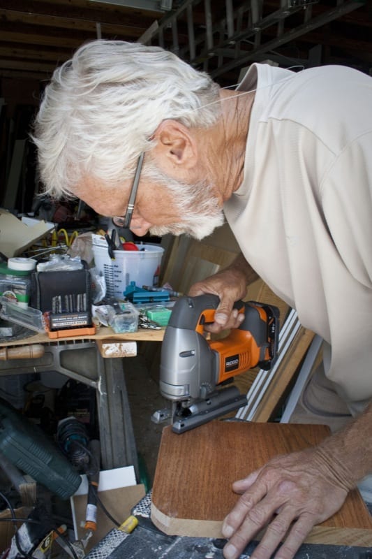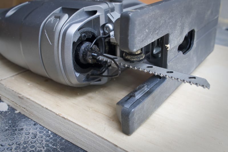 Pulling it out, I set it aside as I drilled two 1/4โณ holes on the inside corners of the cutout area. Using a finer 14TPI general purpose, vented Ridgid blade, the cut was a cakewalkโwith one exception. I really like to see my blade clearly, for accuracy, and the chip shield seemed (to my eyes, at least) to be a bit prohibitive in that area. This also brought to mind the fact that the Ridgid R8831B lacks any sort of LED light for the cutting areaโa feature that was very much missed. Maybe my eyes just arenโt what they used to be, but it seems like every new cordless tool has an integrated light these days, and this jig saw would be much improved if it had one.