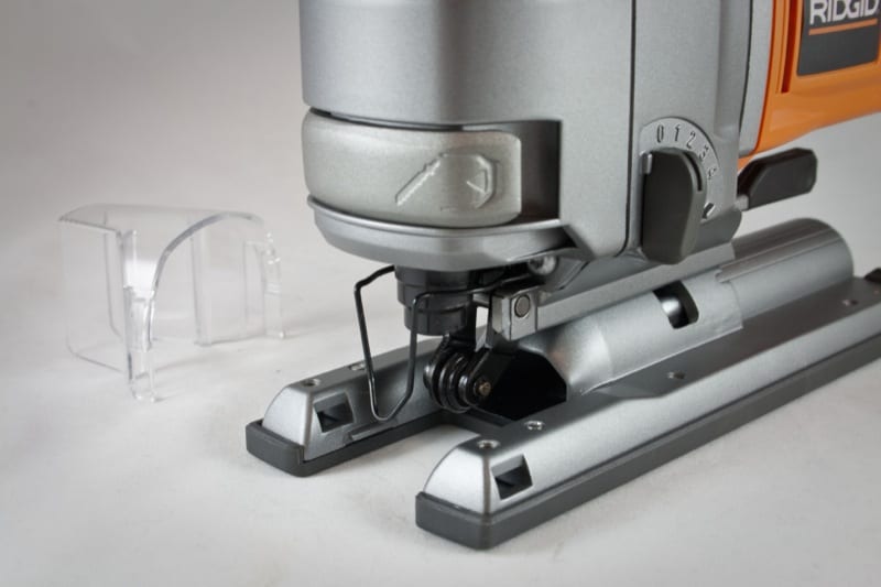 The Ridgid R8831B jig saw, which is sold as a standalone tool for just $119, comes with a few pretty helpful features. For example, the saw uses a tool-free blade change mechanism. While this is nothing new, a lot of the older tools Iโve used over the years required an Allen key to change out the t-shank blades. Interestingly, Ridgidโs new blades will work with any jig saw blade system and feature a universal shank. A variable speed dial also helps when you want to match the speed to the type of material youโre cutting through or the type of cuts youโre making.